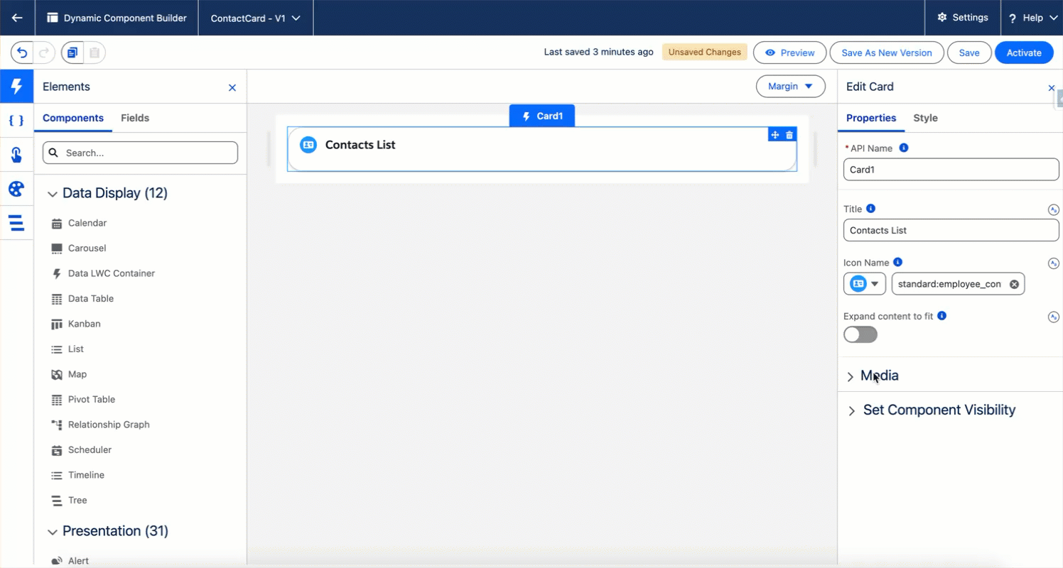 The Avonni Card is a versatile and essential layout tool for creating organized, visually appealing, and functional sections within your Dynamic Components. By leveraging its header, content, and footer slots, you can easily build complex arrangements of other components.
