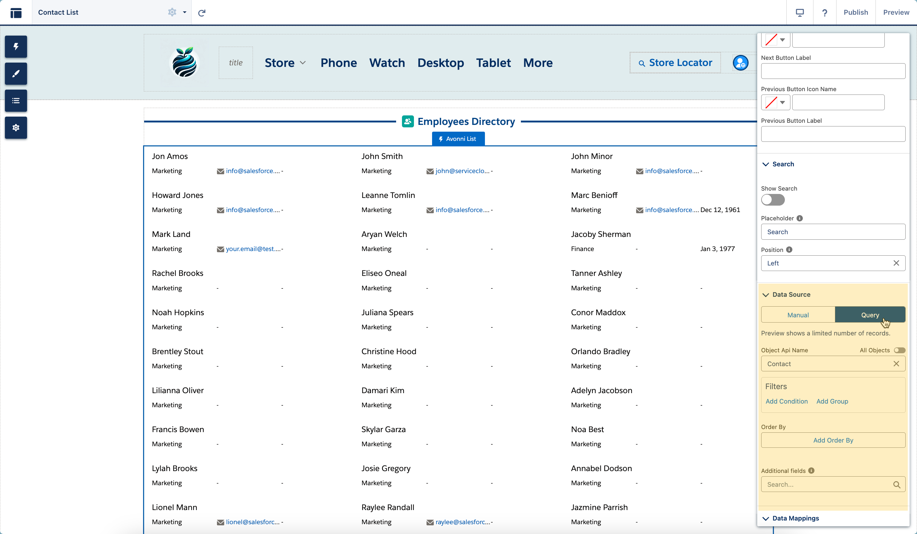 Im Abschnitt Datenquelle verbinden Sie die Avonni-Liste mit Ihren Salesforce-Daten. Es gibt zwei Datenquellenoptionen.
