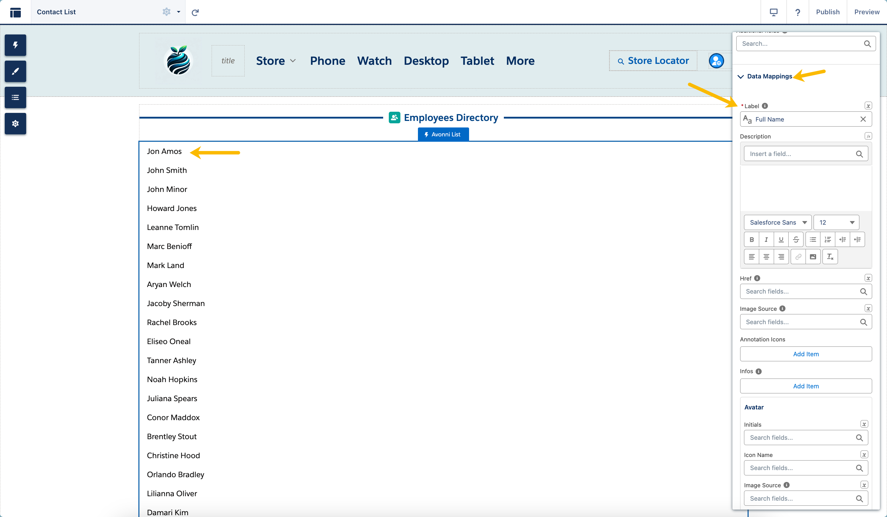 Im Abschnitt Datenzuordnungen erwecken Sie Ihre Liste zum Leben, indem Sie sie definieren und anpassen.