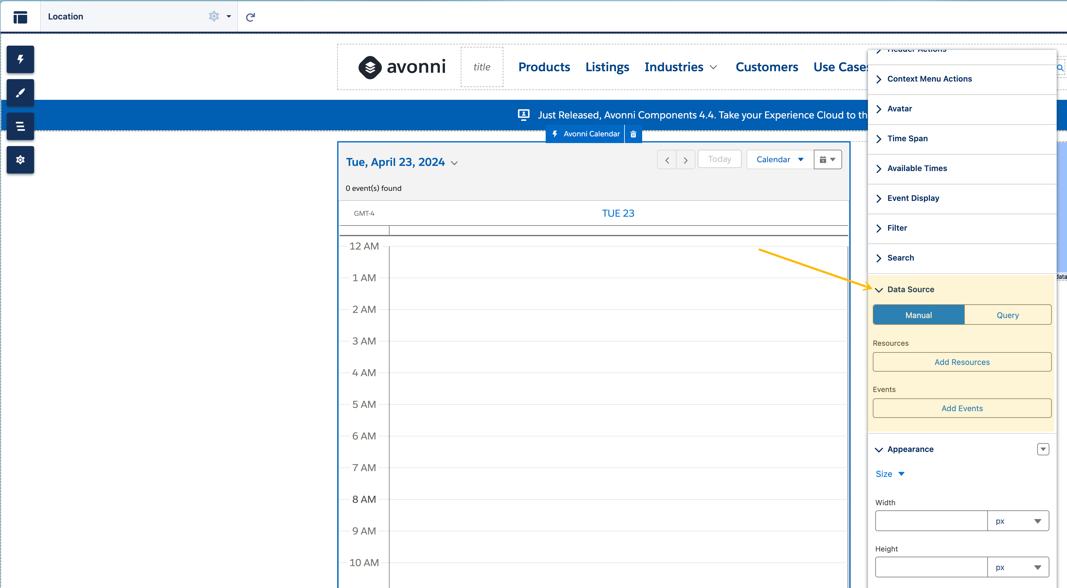 Este paso esencial en la configuración de tu componente Avonni Calendar establece la conexión entre los elementos de tu calendario y los datos relevantes dentro de tu entorno de Salesforce.&#x20;