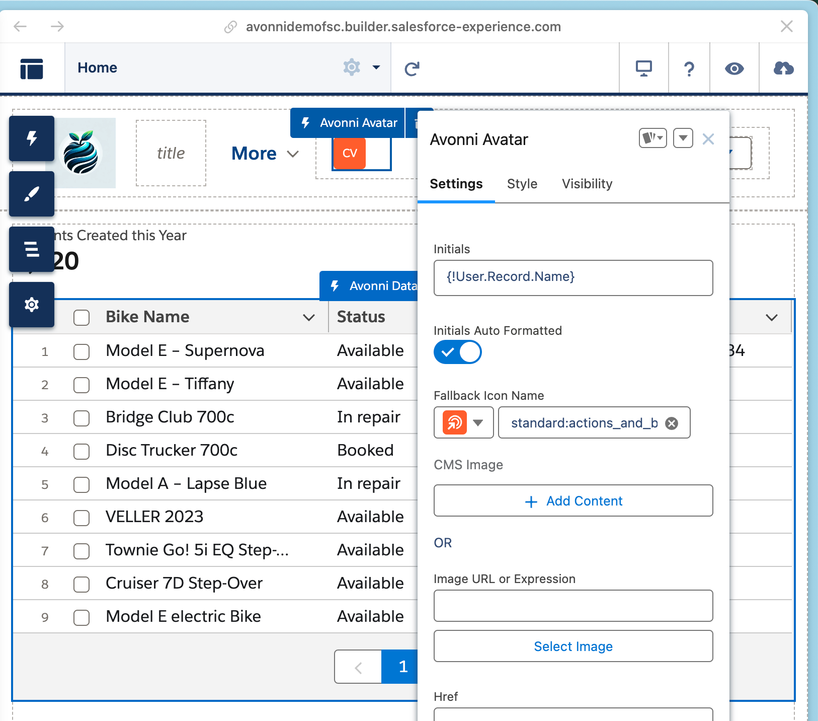 The Avonni Avatar component helps you create visually consistent representations of users or entities within your Salesforce Experience Cloud site. Here's a step-by-step guide to personalize the Avatar to fit your needs: