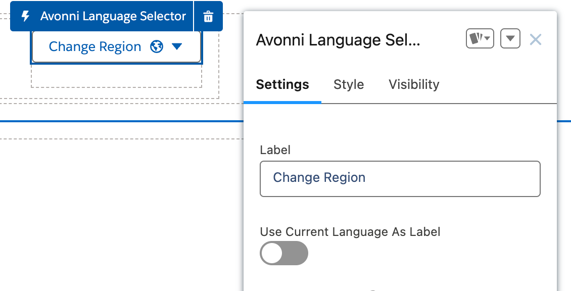 Alternatively, toggle the "Use current language as a label" option to dynamically display the currently selected language as the label.
