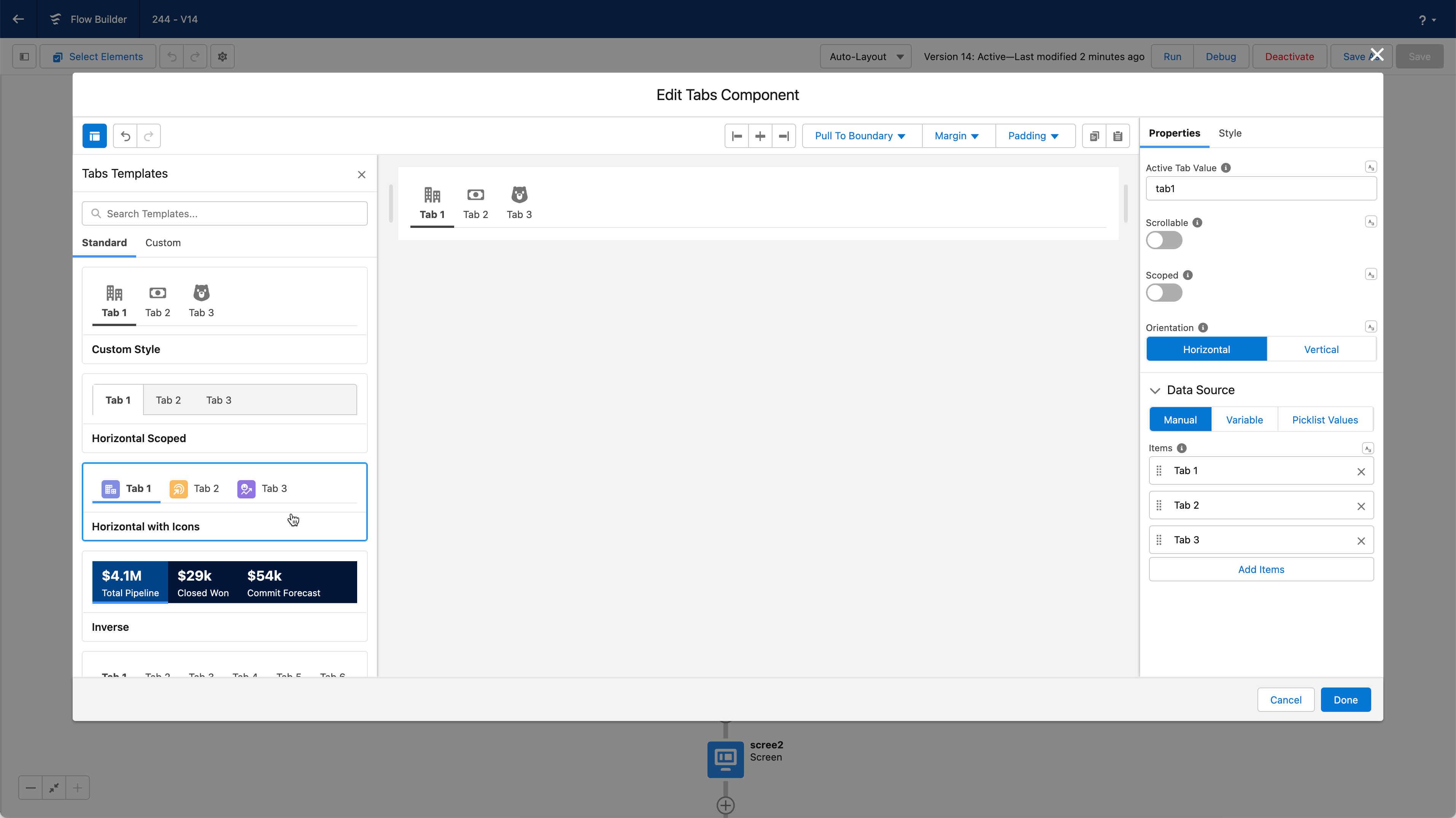Creating custom templates with the Avonni Flow Screen Components library is simple and efficient. Follow these steps to design and save your custom templates: