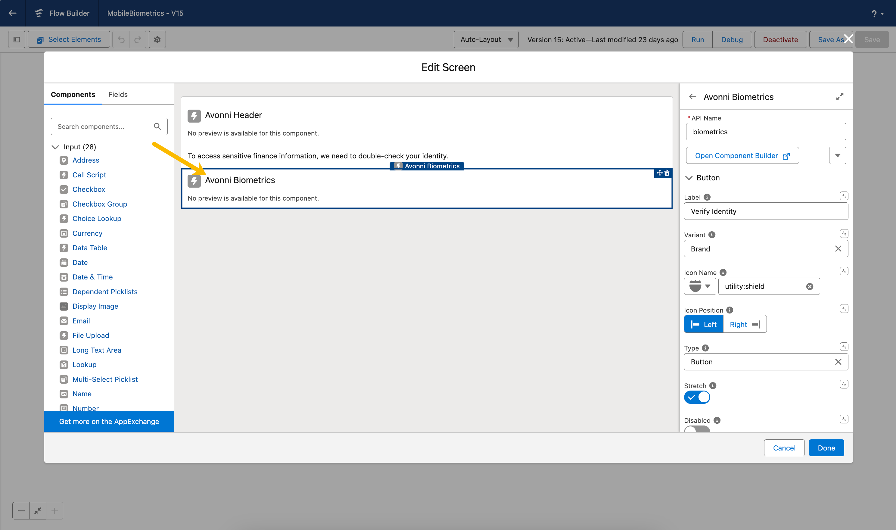 Step 1: Add a screen element and add the Avonni Biometrics component inside