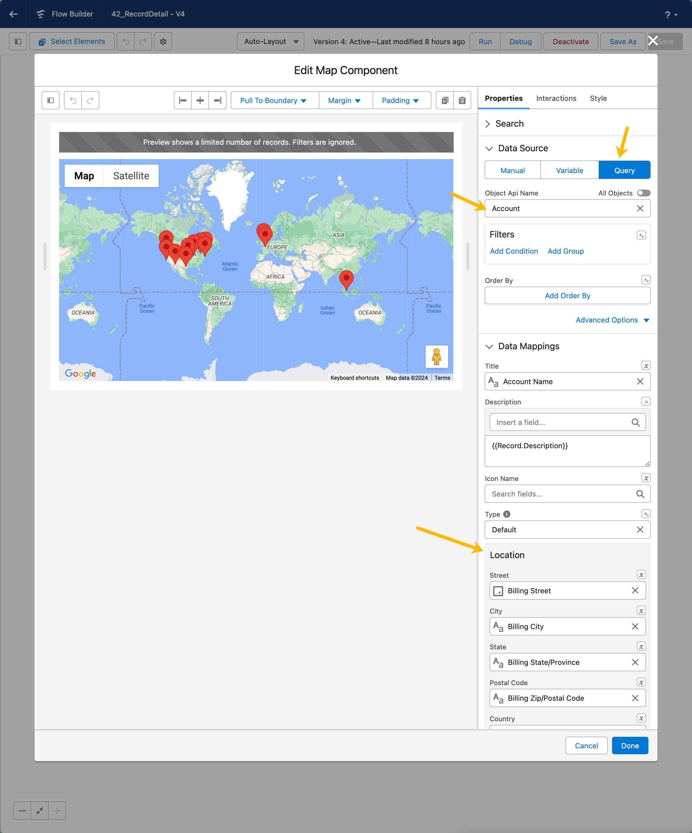 By doing this, the Record Detail component will automatically establish a connection with the Map, ensuring the data is synchronized and displayed correctly.
