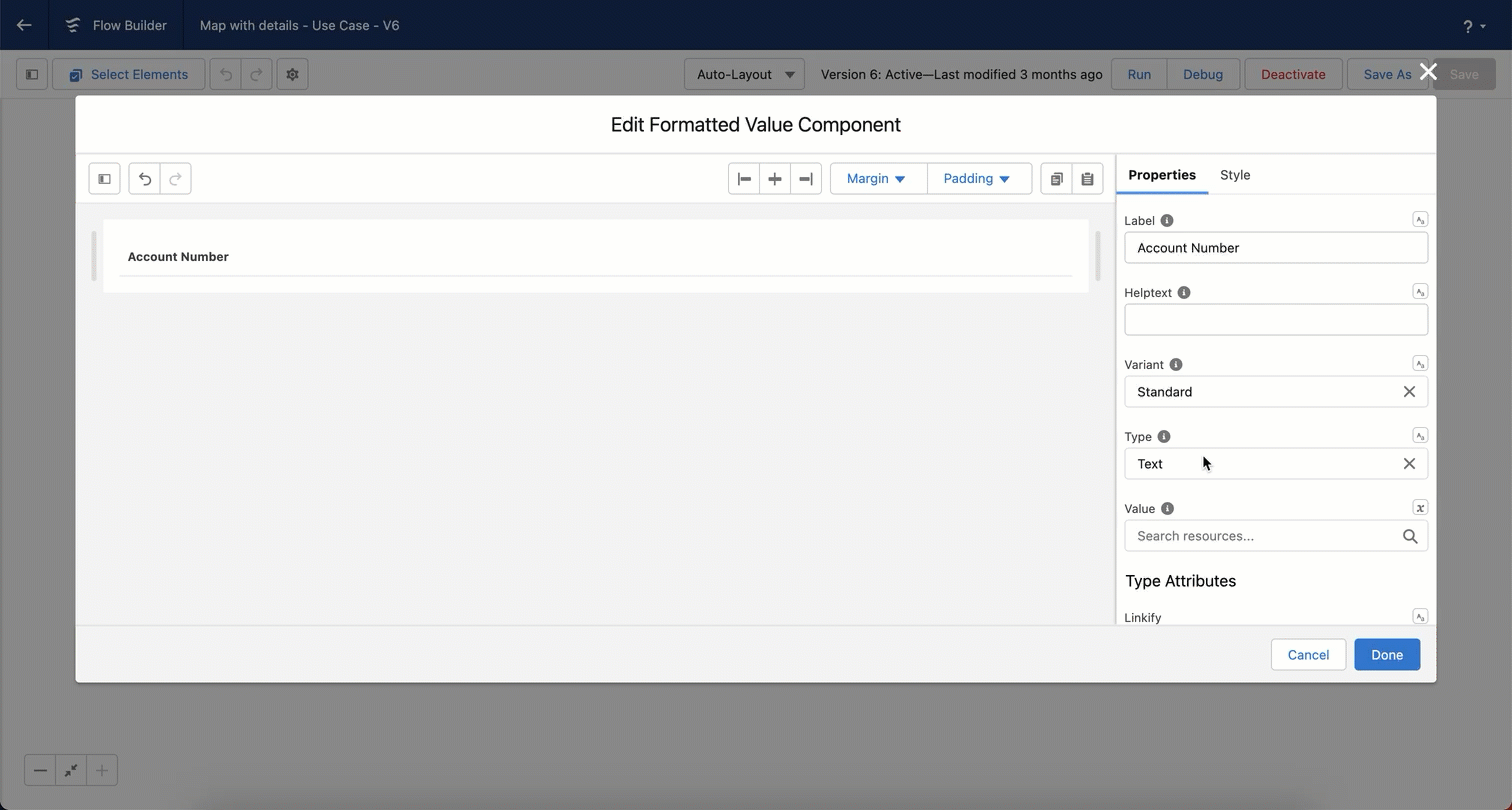 * **Add the 'Avonni Formatted Value' component component.** This lets you show additional account information right below the name.